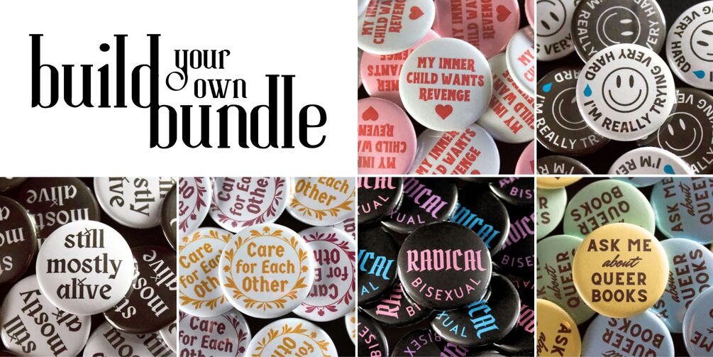 Build your own custom bundle of 1.25-inch pinback buttons.